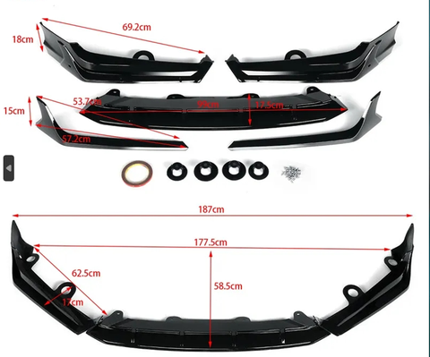 Pemisah Bibir Bumper Depan Hitam Gloss Suku Cadang Eksterior Mobil untuk Honda Accord 2018-2021